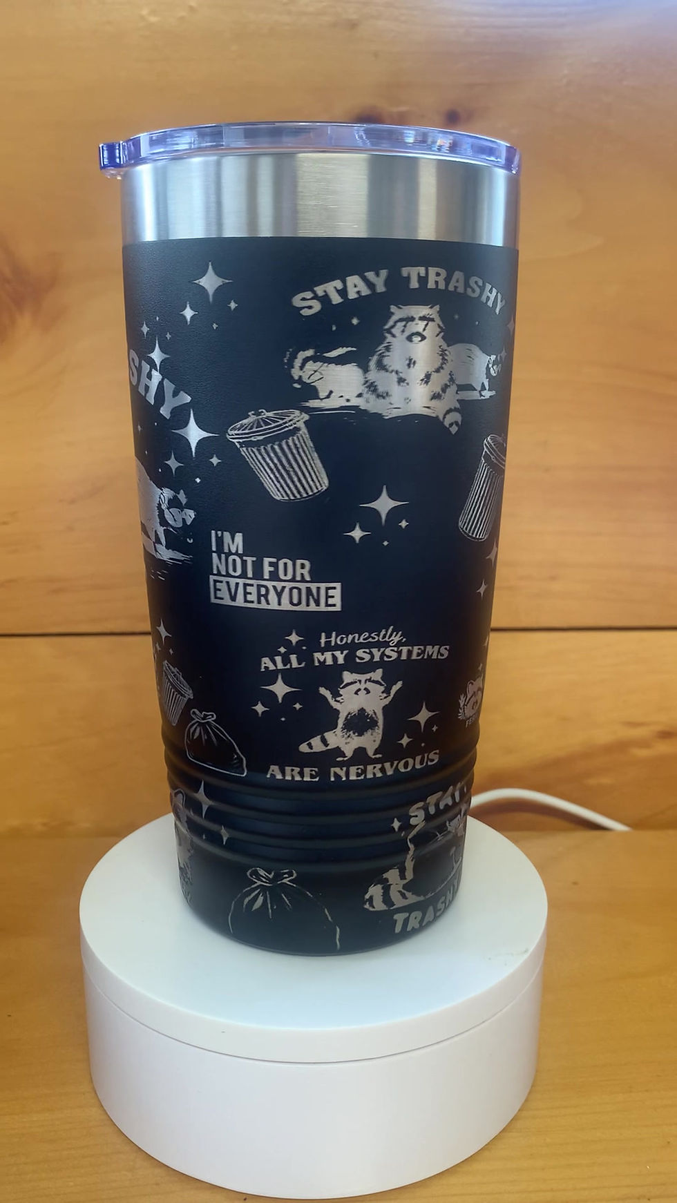 20oz Tumbler "Stay Trashy Racoon " wrap With Slide Lid